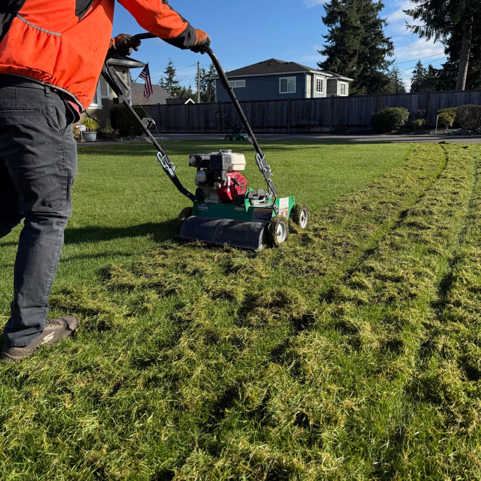 Local lawns in the Pacific Northwest experience heavy organic buildup due to moisture, moss pressure, and steady growth. Over time, thatch accumulates at the surface, restricting airflow, water penetration, and nutrient absorption.